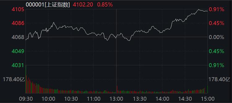 上证指数上涨0.85%至4,100点,煤炭股领涨。